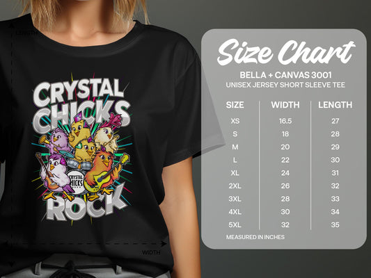 Crystal Chicks Rock Band Cartoon T-Shirt, Colorful Musician Chickens Graphic Tee, Fun Pop Culture Apparel