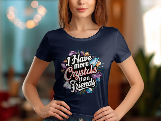 Crystal Lover T-Shirt, I Have More Crystals Than Friends Quote, Colorful Gemstone Graphic Tee, Casual Comfy Shirt for Crystal Collectors