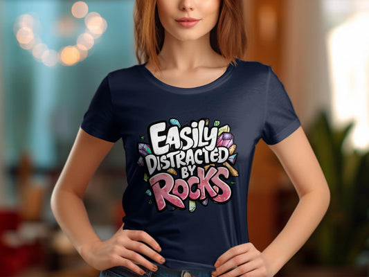 Easily Distracted by Rocks T-Shirt, Geology Lover Tee, Crystal Collector Shirt, Mineral Enthusiast Top, Casual Gemstone Apparel