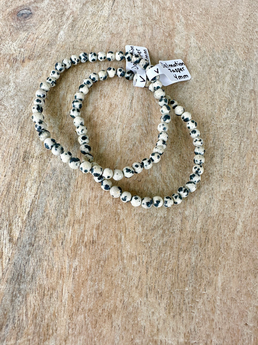 Dalmatian Jasper Bracelet 4mm Beads - Playful Protection and Grounding Energy, Perfect for Joy and Emotional Balance