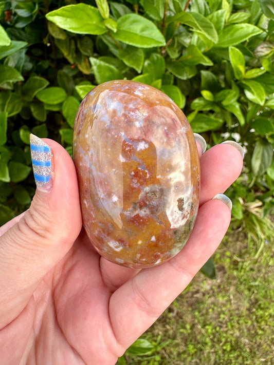 Ocean Jasper Palm Stone for Meditation and Healing - Soothe Your Soul with Natural Crystal Energy, Perfect for Stress Relief and Harmony