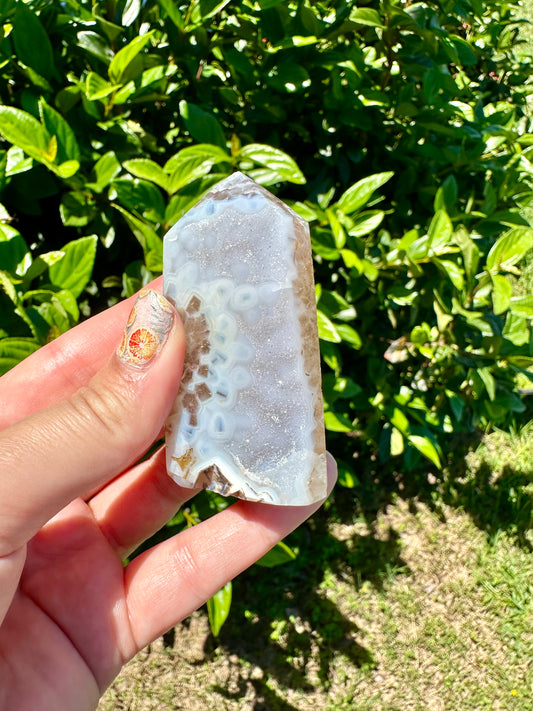 Druzy Agate Tower - Natural Gemstone Decor for Healing and Energy Balancing, Perfect for Meditation and Home Decoration