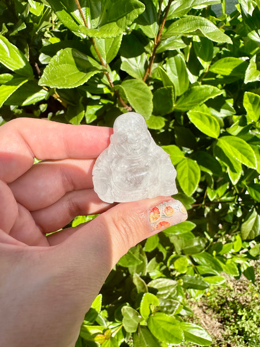 Clear Quartz Laughing Buddha Statue for Positive Energy & Happiness - Perfect Feng Shui Decor for Home and Office