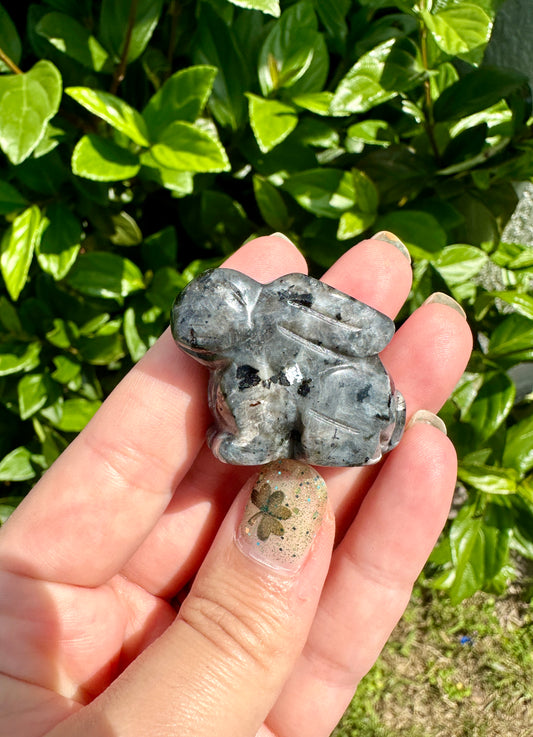 Larvikite Rabbit Carving - Unique Home Decor, Handcrafted Stone Bunny, Perfect Gift for Nature Lovers, Mystic Animal Figurine