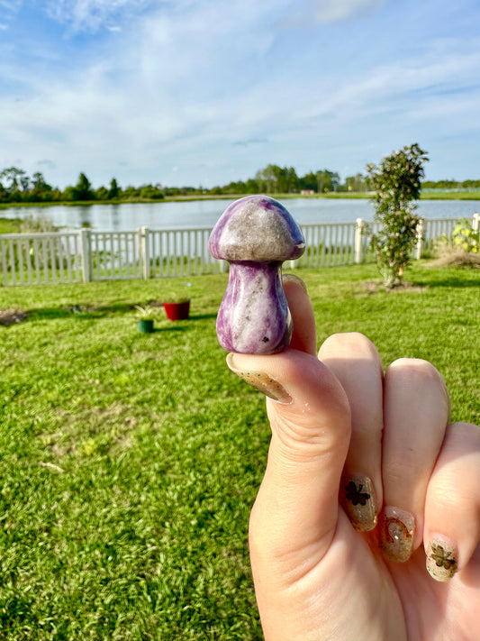 Lepidolite Mushroom Carving - Soothing Crystal Decor for Peaceful Ambiance in Home and Wellness Spaces