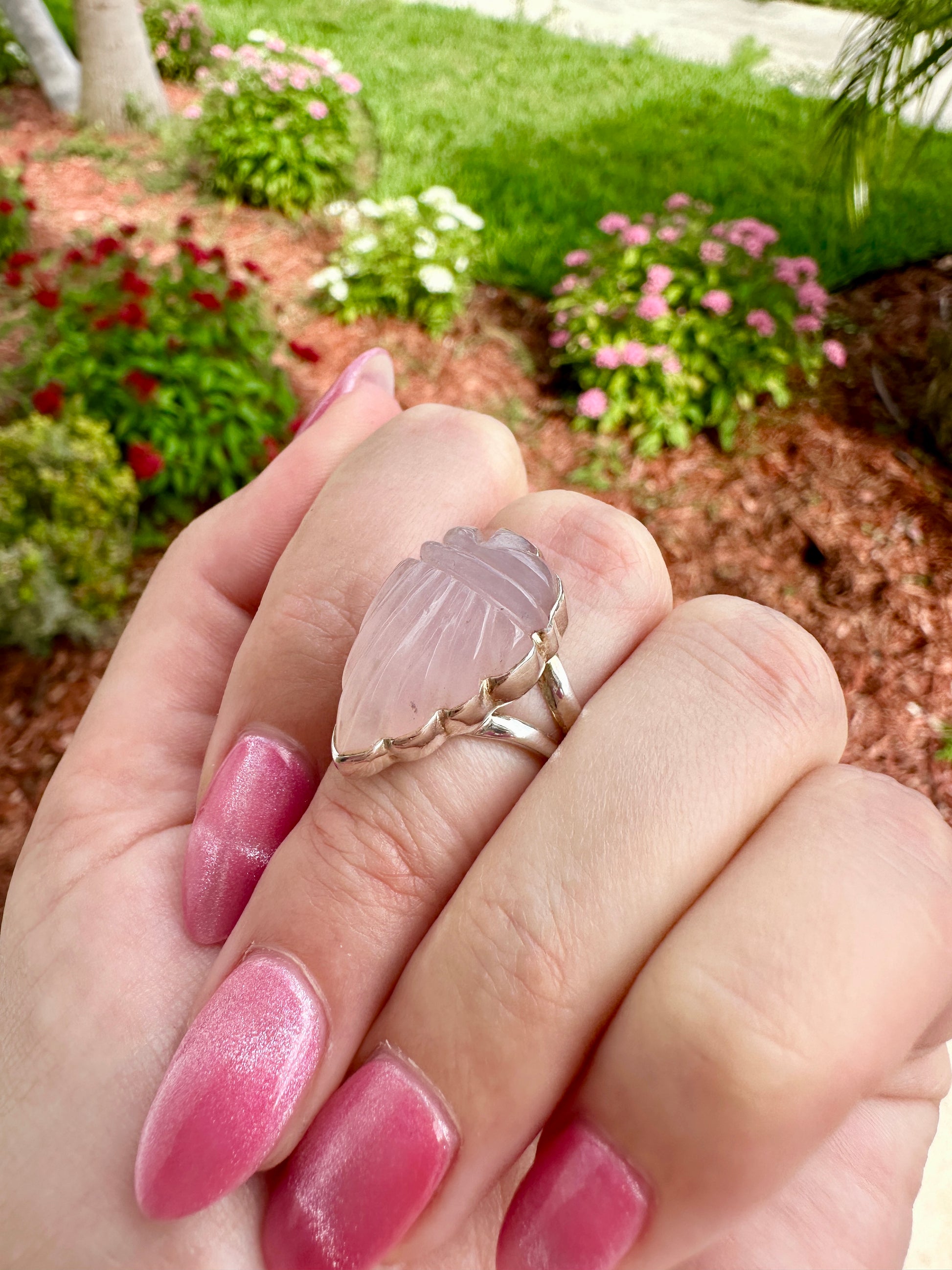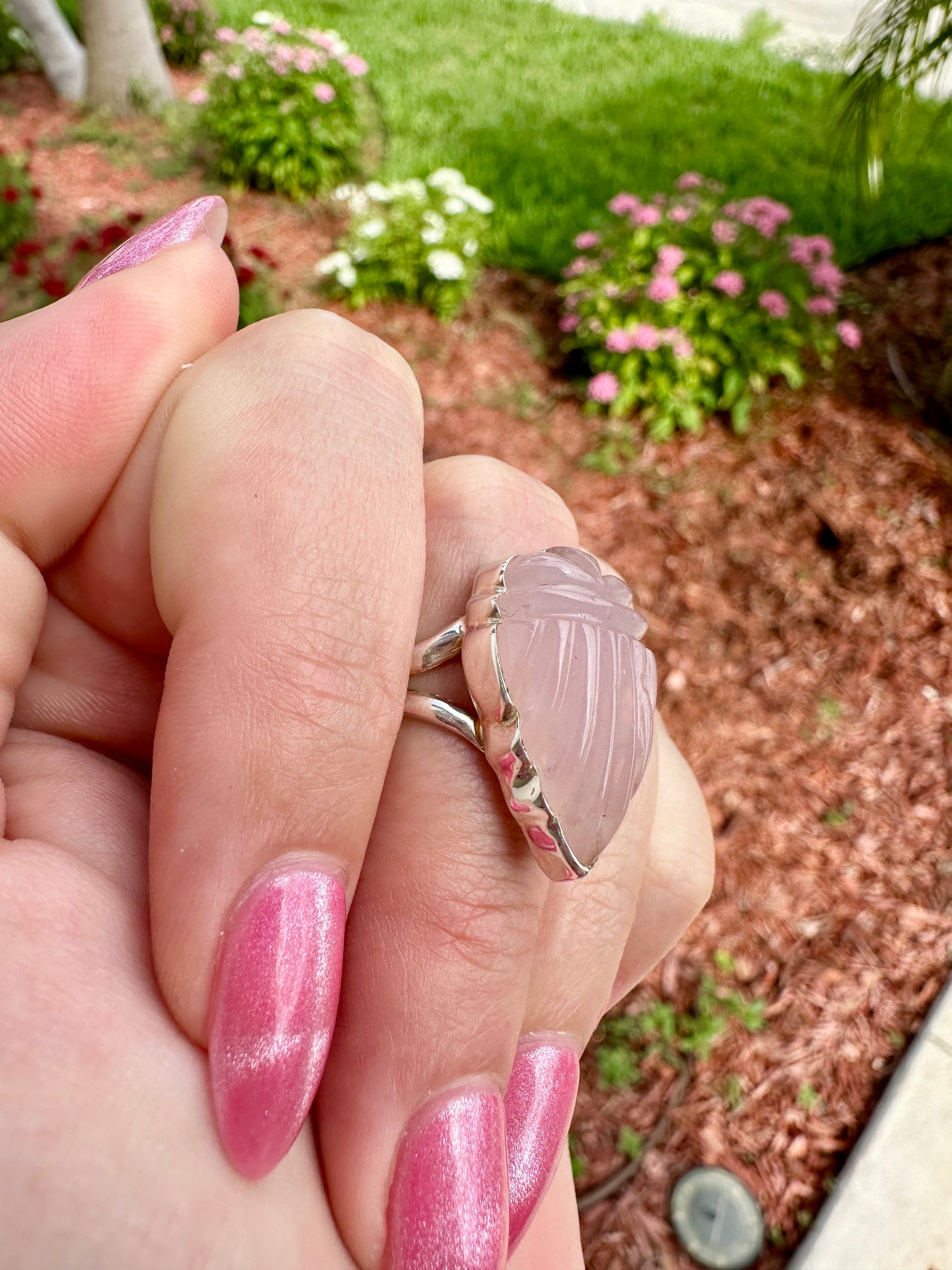 Rose Quartz - Sterling Silver Size 7.25 Ring