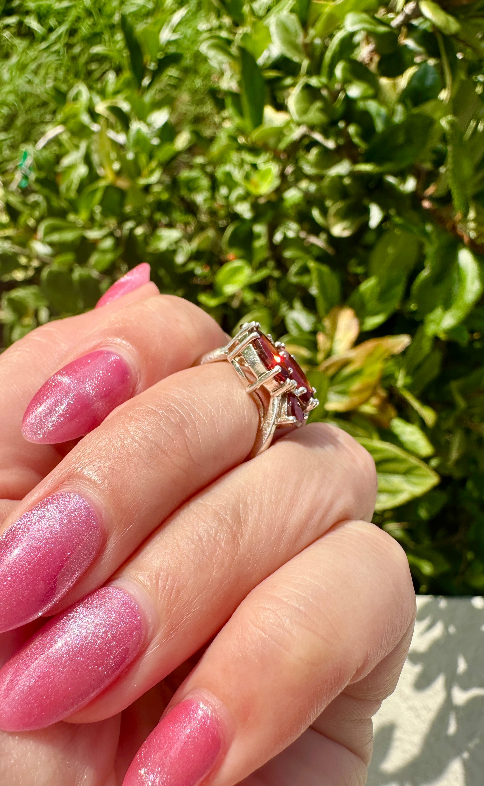 Embrace the stunning beauty of our Sterling Silver Garnet Ring, sized perfectly at 8.