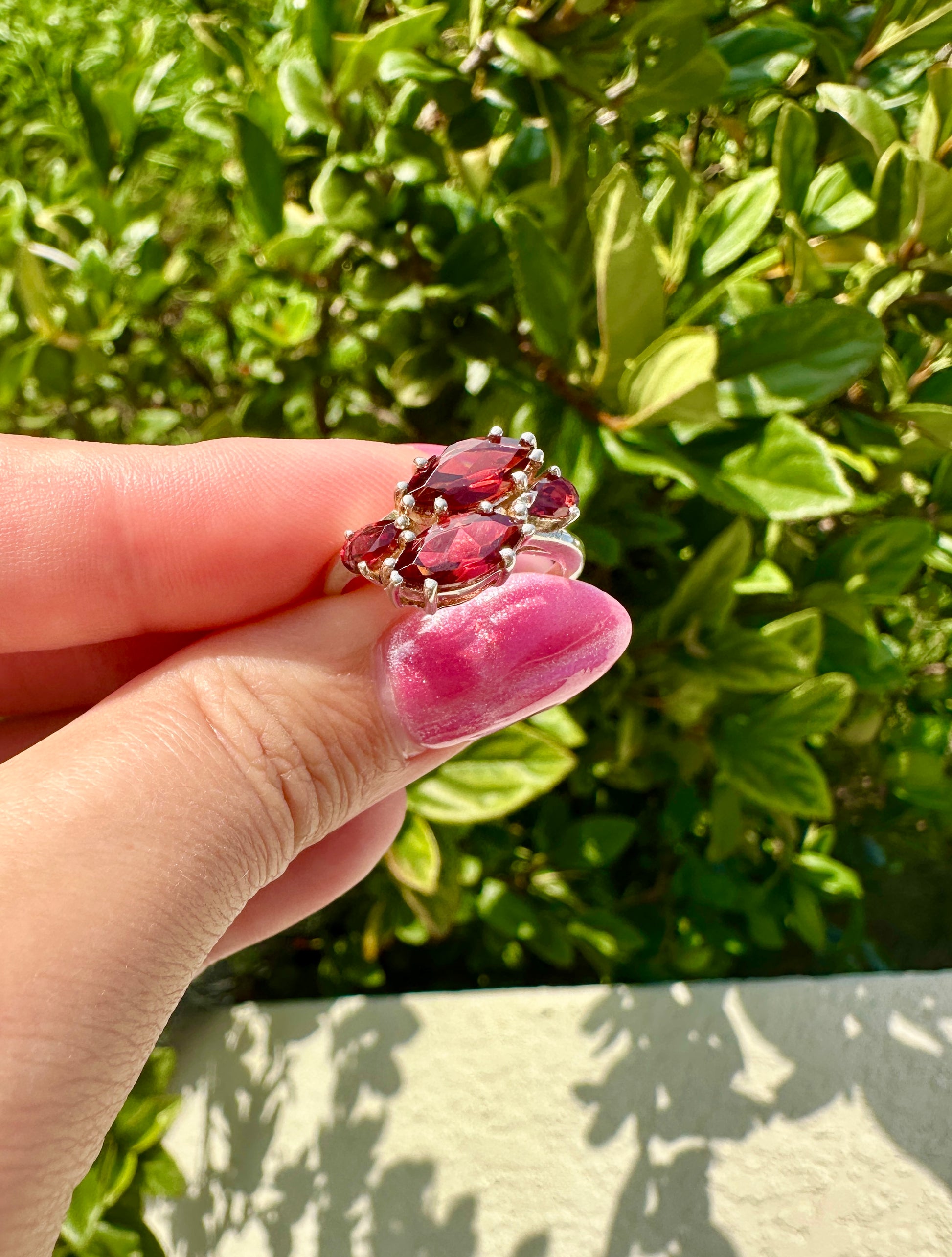Sterling Silver Garnet Ring Size 8