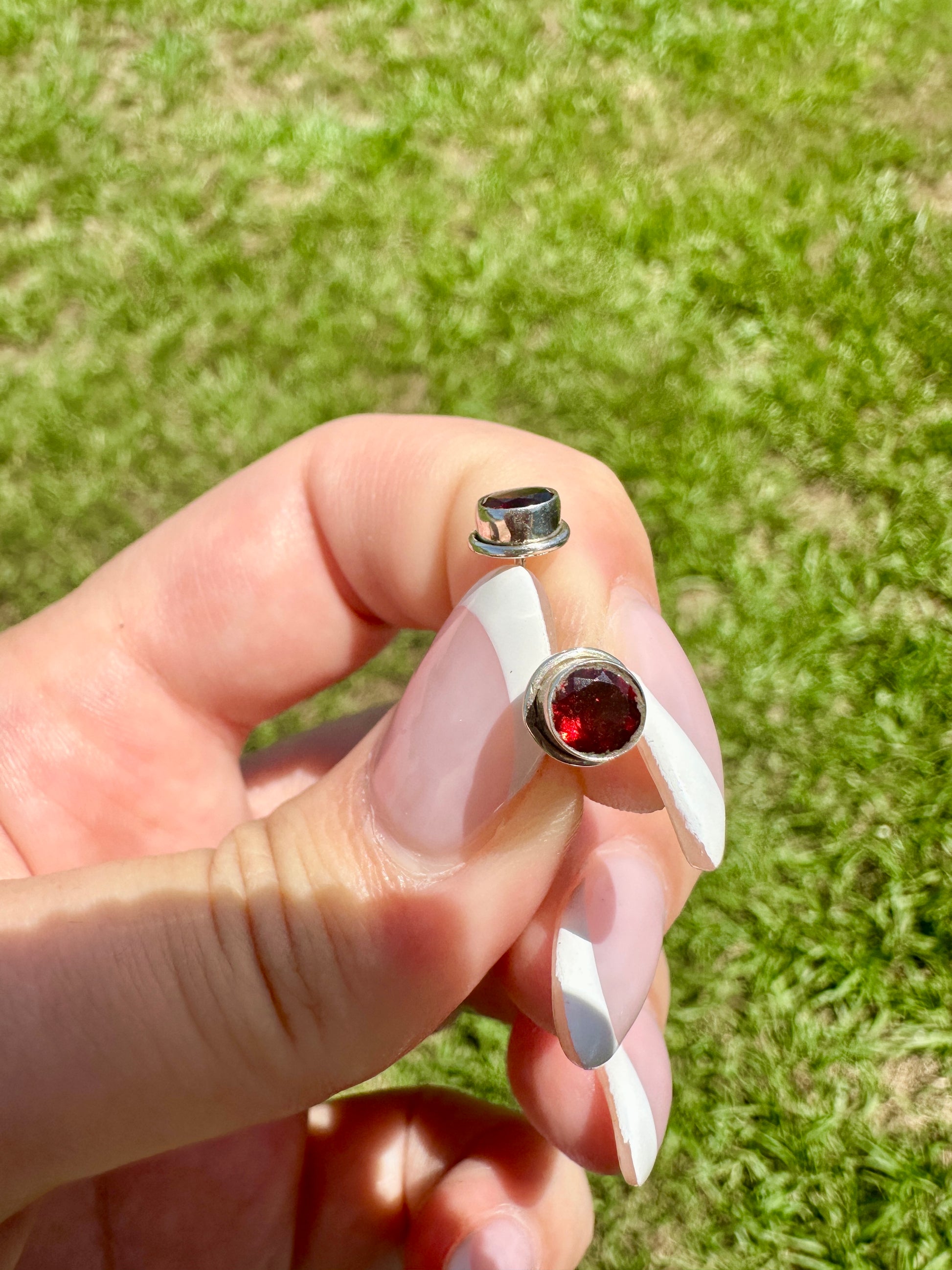 Discover the perfect blend of elegance, passion, and craftsmanship with this sterling silver garnet studs.